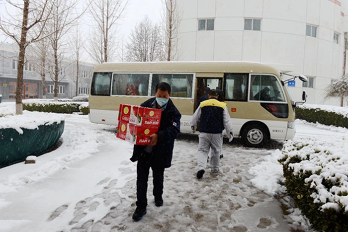 2月14日,北京普降大雪,北化集團工會、宣傳部安排三名同志,集團辦公室安排經驗豐富的駕駛員,冒著紛飛的大雪,滿載慰問品,專程前往華騰化工園區和華騰橡塑公司進行走訪慰問,為戰斗在疫情防控和復工復產一線的干部職工送上集團黨委、工會“娘家人”貼心的關懷和溫暖。