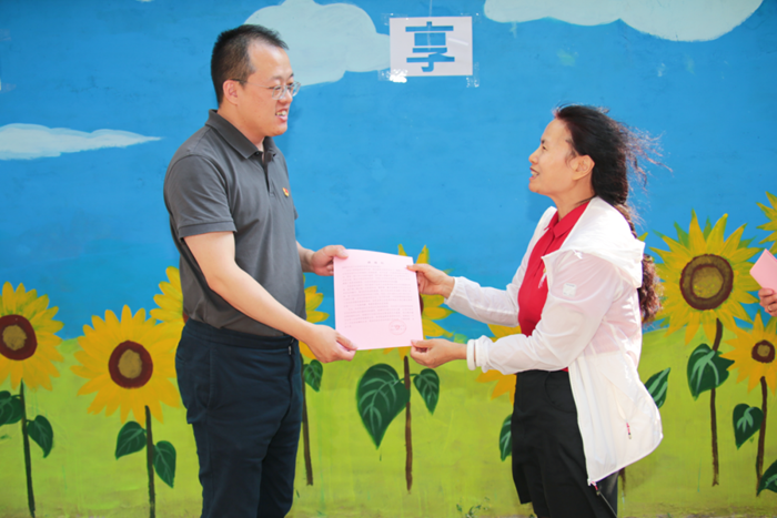 近日,祈東家園社區(qū)黨委班子成員和技師學(xué)院領(lǐng)導(dǎo),專門看望了參加墻繪活動(dòng)的師生。祈東家園社區(qū)高度贊揚(yáng)了墻繪的創(chuàng)意內(nèi)容,對師生的辛勤付出給予高度評價(jià)。該社區(qū)還向技師學(xué)院和學(xué)生們發(fā)出了感謝信,為學(xué)生們發(fā)放了紀(jì)念品。