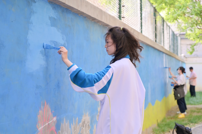 祈東家園社區(qū)與技師學(xué)院北校區(qū)僅一墻之隔。為推進(jìn)學(xué)院與社區(qū)和諧共建,技師學(xué)院師生利用自己的長處積極服務(wù)社區(qū)居民。自今年4月份以來,技師學(xué)院文創(chuàng)系師生們選擇了雙方共享的一面墻體,以“幸福祈東 共建共享美麗家園”為主題,每周三下午都要來到祈東家園社區(qū),為社區(qū)居民繪制社區(qū)院墻。師生們巧妙地將象征著生機(jī)與活力的向日葵、風(fēng)車以及社區(qū)家園圖案等元素融入墻繪作品。經(jīng)過7次精心繪制,色彩鮮艷、生動(dòng)活潑的墻繪作品逐步呈現(xiàn),為社區(qū)帶來了新氣象,讓幸福祁東更加美麗,也讓圍墻變成了社區(qū)精神文明建設(shè)、黨建宣傳的新窗口。