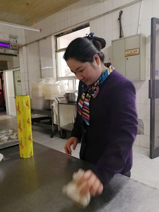 周引萍原籍甘肅,從春節起一直沒有返鄉休假,在這段緊張而忙碌的時間里,賓館洗碗工因疫情未歸,周引萍就主動擔負起洗碗工作。每日的洗碗消毒,看似沒有平時的工作量大,但因為要求高、標準高,要經過嚴格的消毒程序,幾天下來,她的雙手出現了脫皮現象,而且長時間的彎腰,讓她的腰酸痛不已,要許久才能恢復體力。就是這樣,她從未想過退卻,從未提過苦和累。