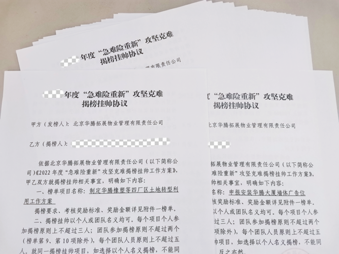 在華騰拓展年初開(kāi)展的急難險(xiǎn)重新“揭榜掛帥”活動(dòng)中,華騰大廈團(tuán)隊(duì)所揭的榜,直指大廈寫字樓經(jīng)營(yíng)開(kāi)發(fā)的“痛點(diǎn)”“難點(diǎn)”。面對(duì)任務(wù)明確、目標(biāo)清晰的榜單,這個(gè)團(tuán)隊(duì)心中有壓力,但更有干勁兒和沖勁兒。“好像前面有一座堡壘,你的任務(wù)就是攻下它!”大廈員工說(shuō),“我們得想辦法,老辦法不成,就得想新辦法、出新招,現(xiàn)在我們都在圍繞揭榜轉(zhuǎn),團(tuán)隊(duì)的積極性都給調(diào)動(dòng)起來(lái)了。”